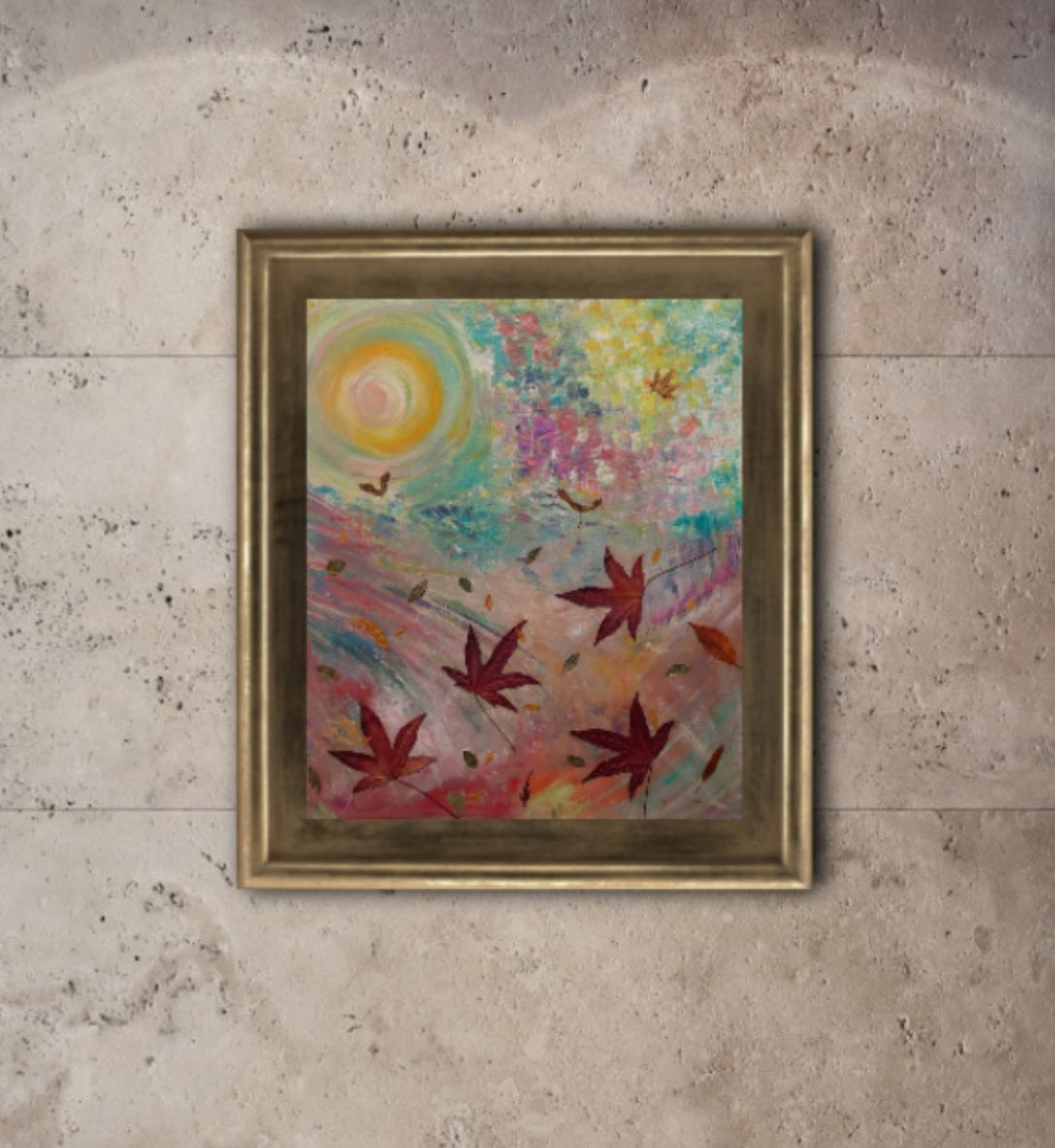As the first installment in the collection, "The Dance" sets the stage with its mesmerizing abstraction and unique creation process. Guided by the whispers of the natural world, I handpicked delicate leaves in a meditative state, allowing intuition to dictate the selection of colors as I immersed myself in the sounds of nature's melody.